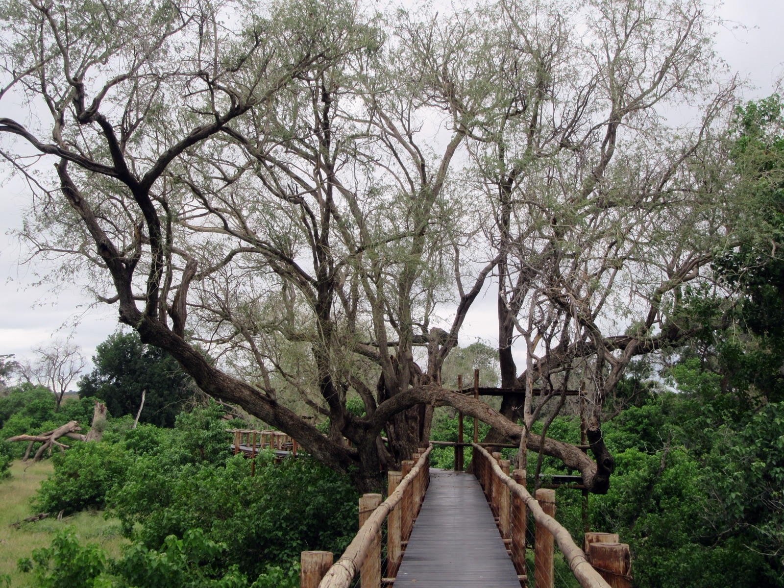 A kilometre-long raised boardwalk through riverine forest along the Limpopo. Early morning is magical — Meyer's parrots, trogons, and grey-headed bush-shrikes move through the canopy, and you'll often spot elephant tracks in the sand below. Budget 90 minutes, longer if you're photographing.