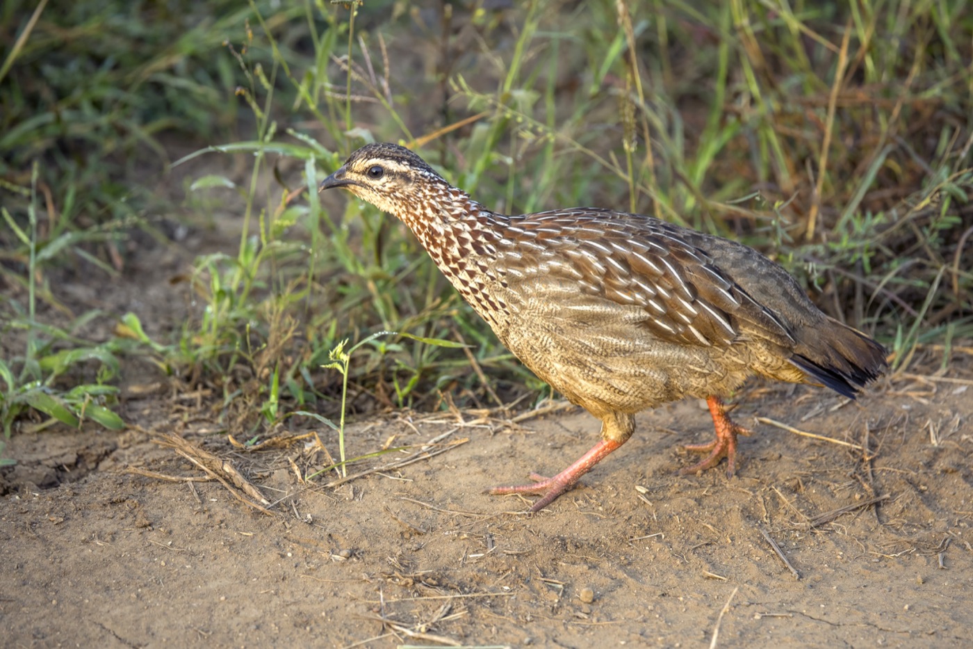 The camp itself is part of the list. White-browed Sparrow-Weaver colonies in the marula trees. Southern Yellow-billed Hornbill on the veranda each morning. Crested Francolin walking between chalets at dawn. Fiery-necked Nightjar at sundowner time — "Good-Lord-deliver-us" is the call.