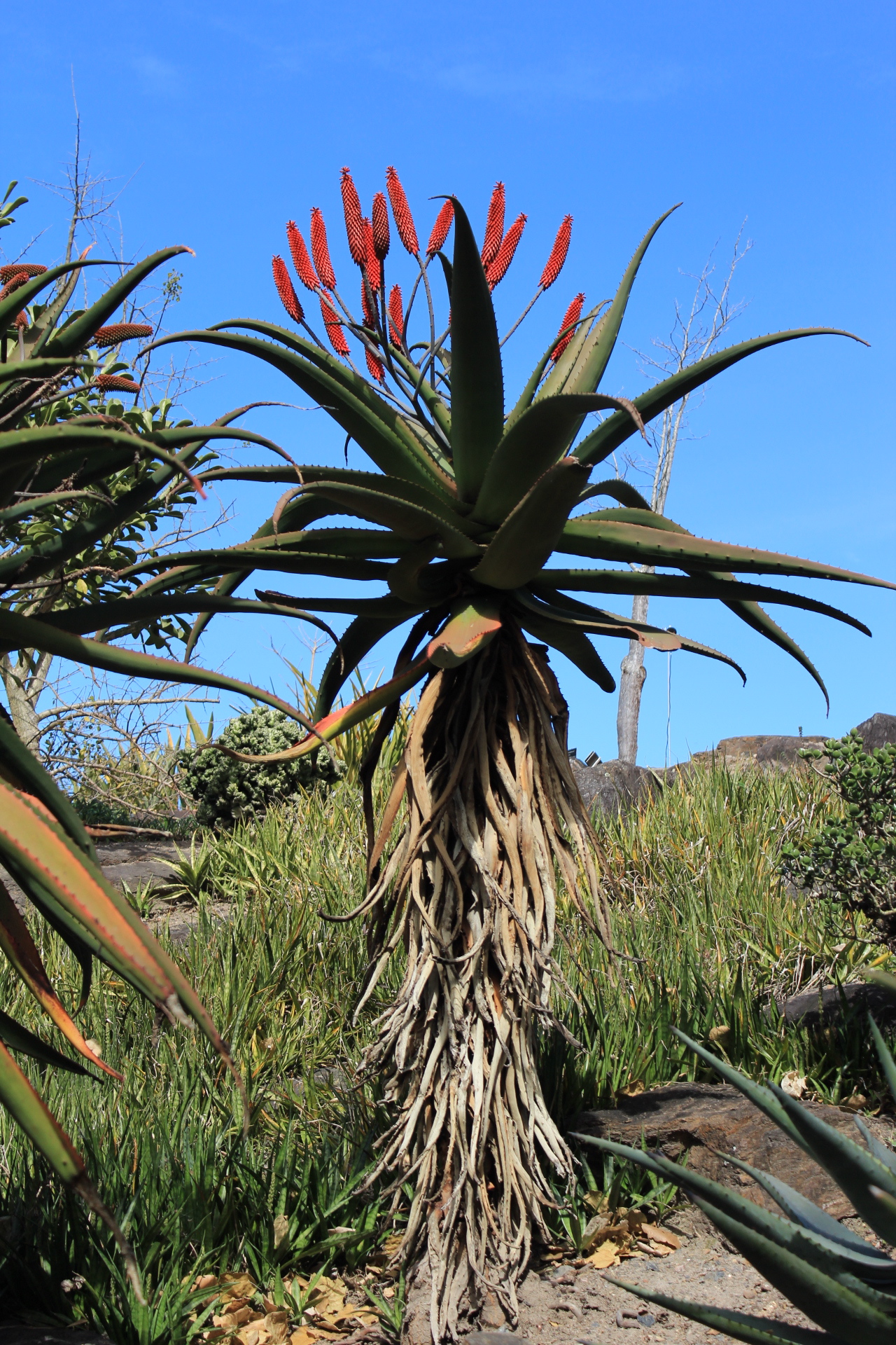Warming into the 20s again. Aloe excelsa in full flower — spectacular tree-aloes, sunbirds mobbing them. Dry and beautiful. Still not crowded.